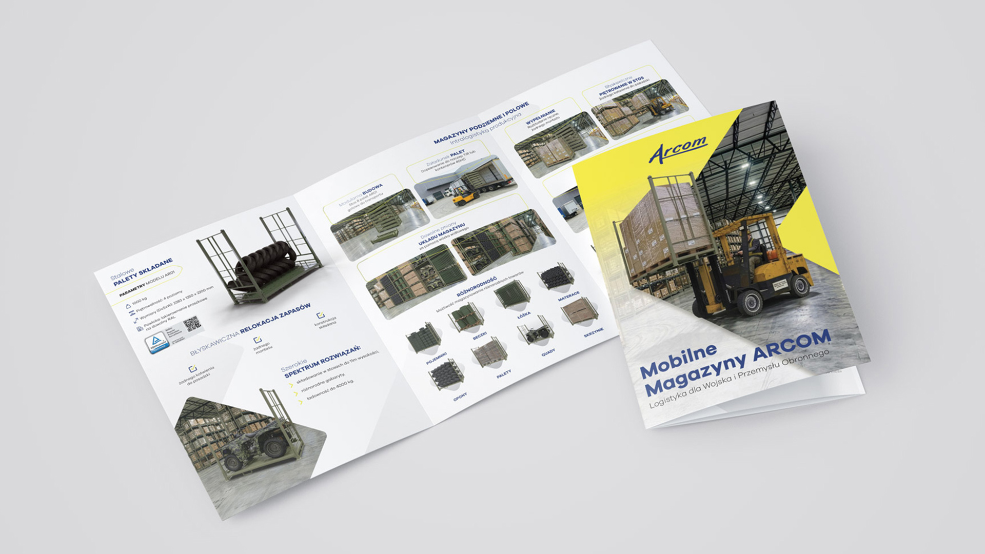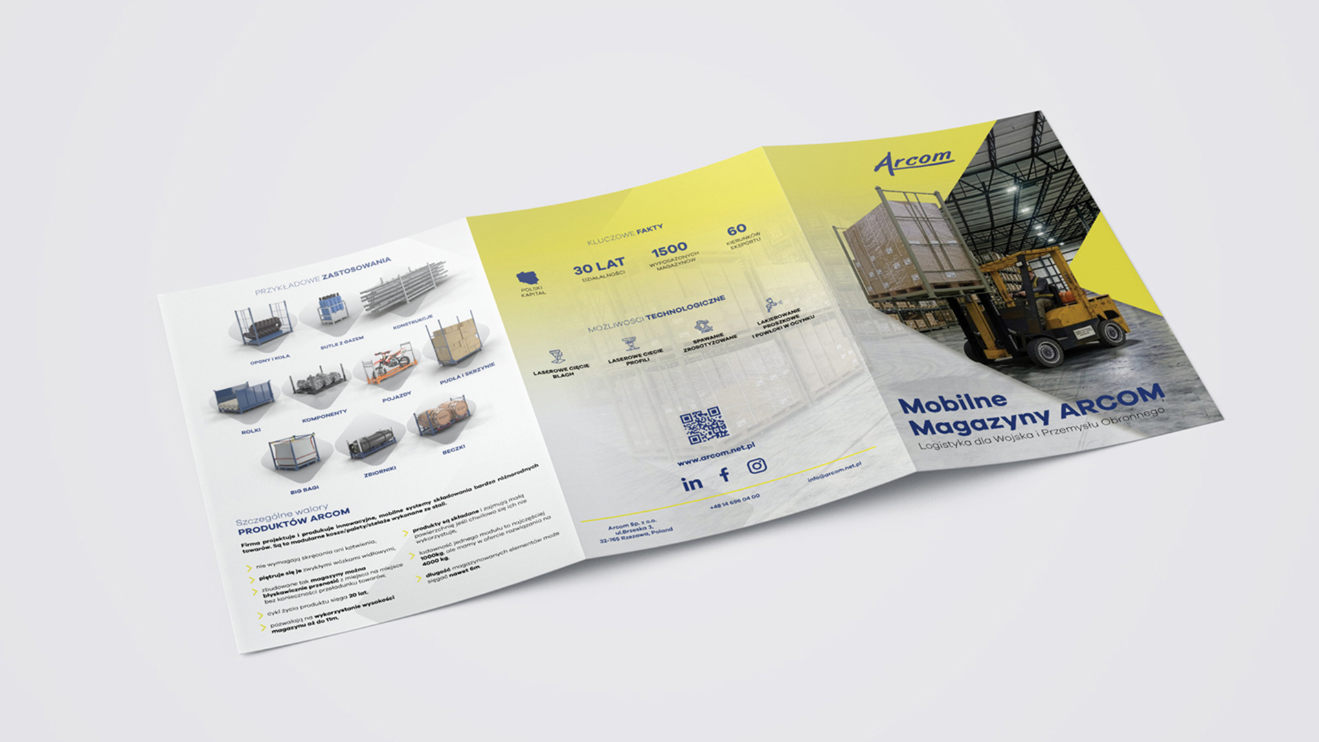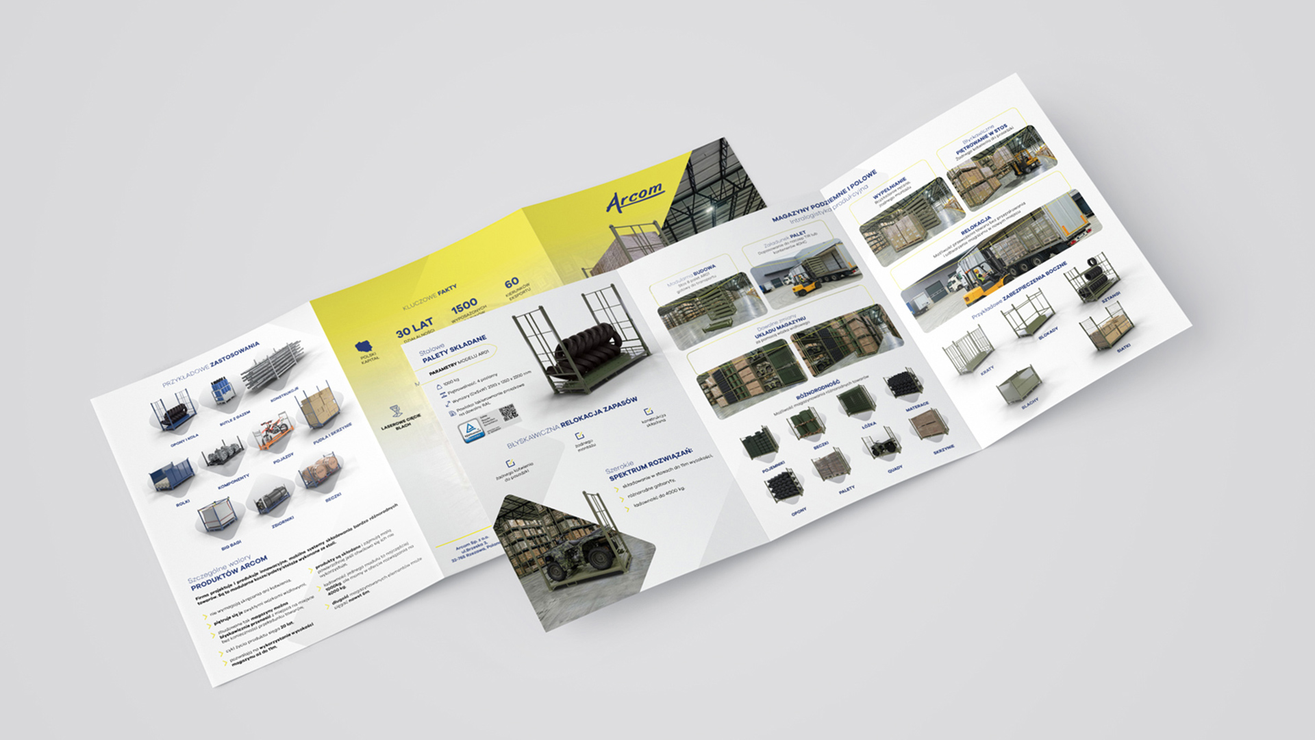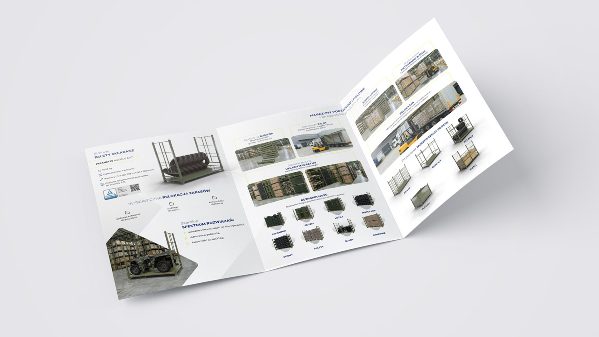 Projekt folderu reklamowego 3xA4 (Tryptyk) dla producenta inteligentnych magazynów , Rudno
