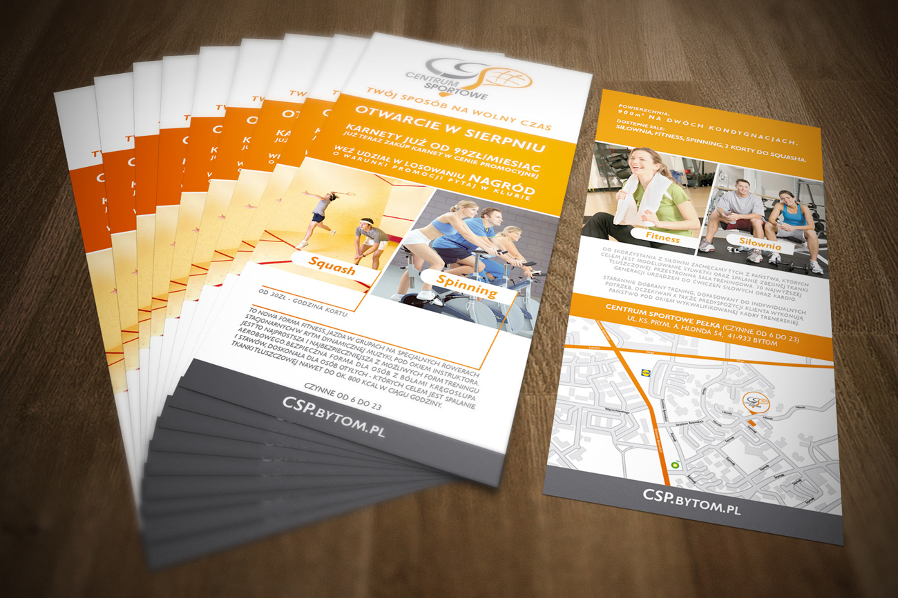 Projekt i druk ulotki DL dla centrum sportowego, Bytom