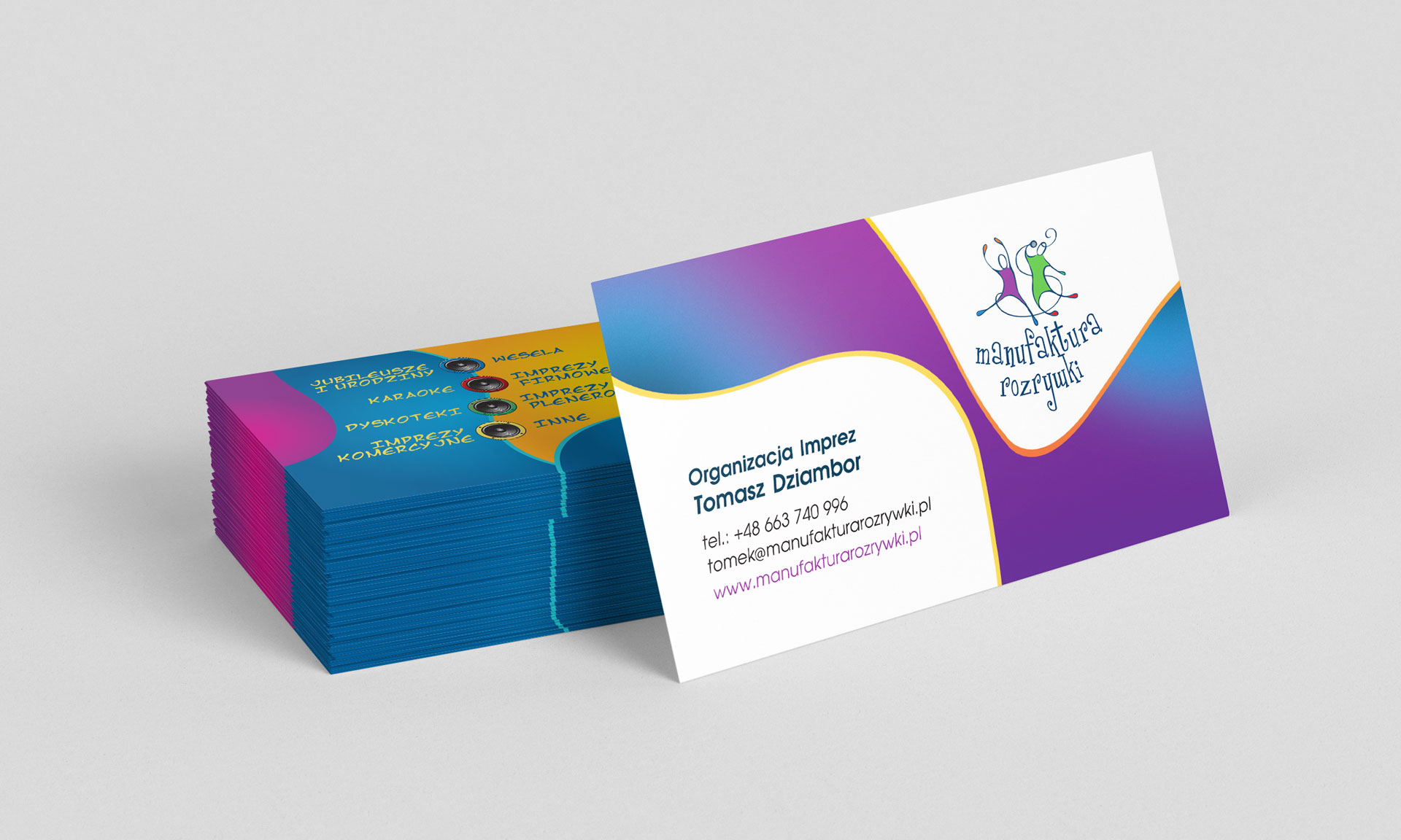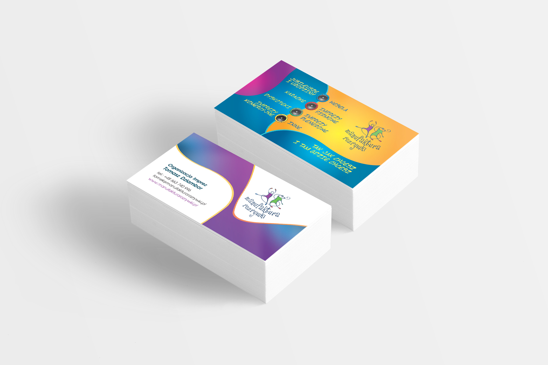 Projekt i druk wizytówek dla firmy z branży rozrywkowej, Bytom