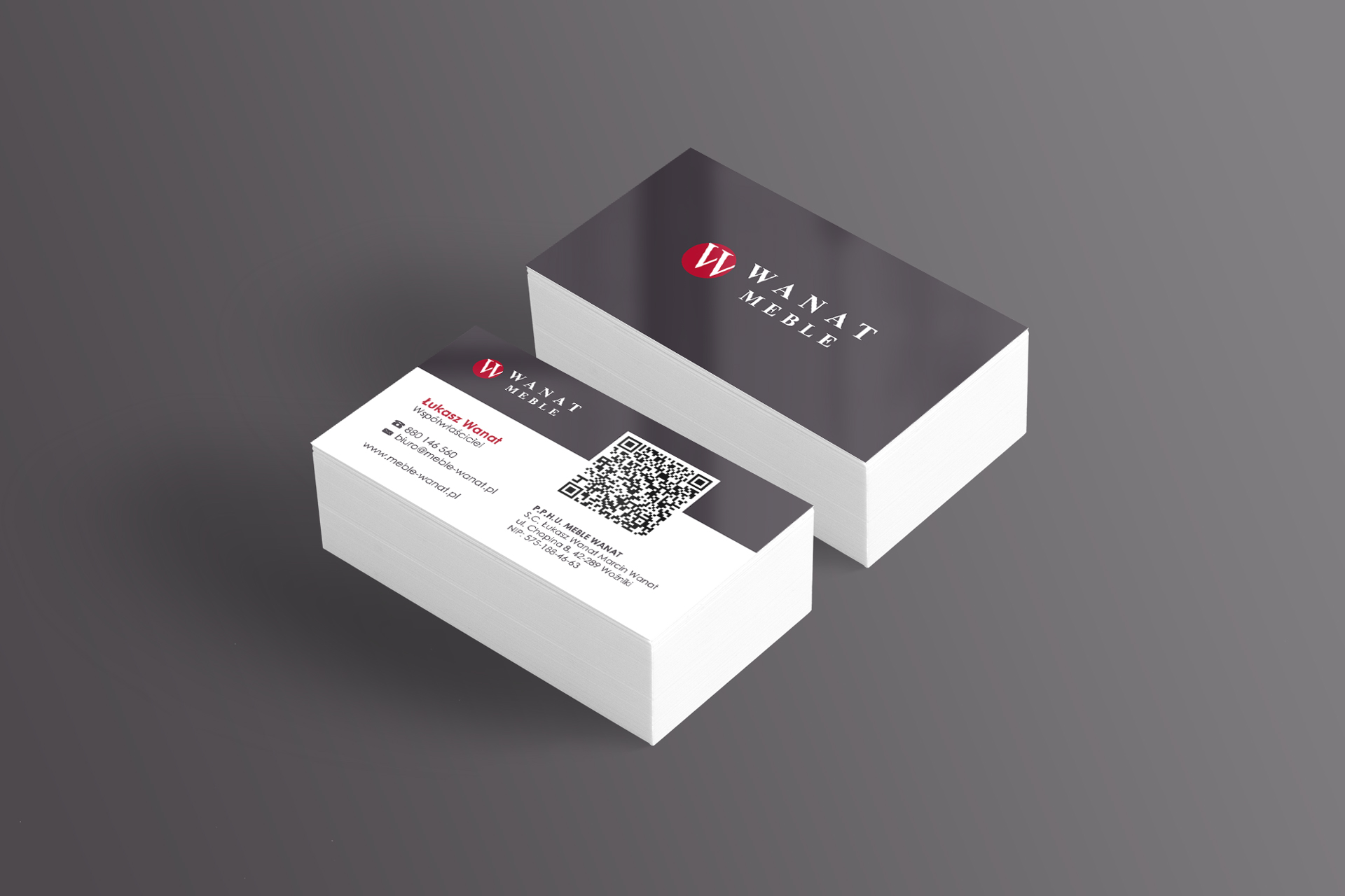 Projekt i druk wizytówek dla producenta mebli, Woźniki