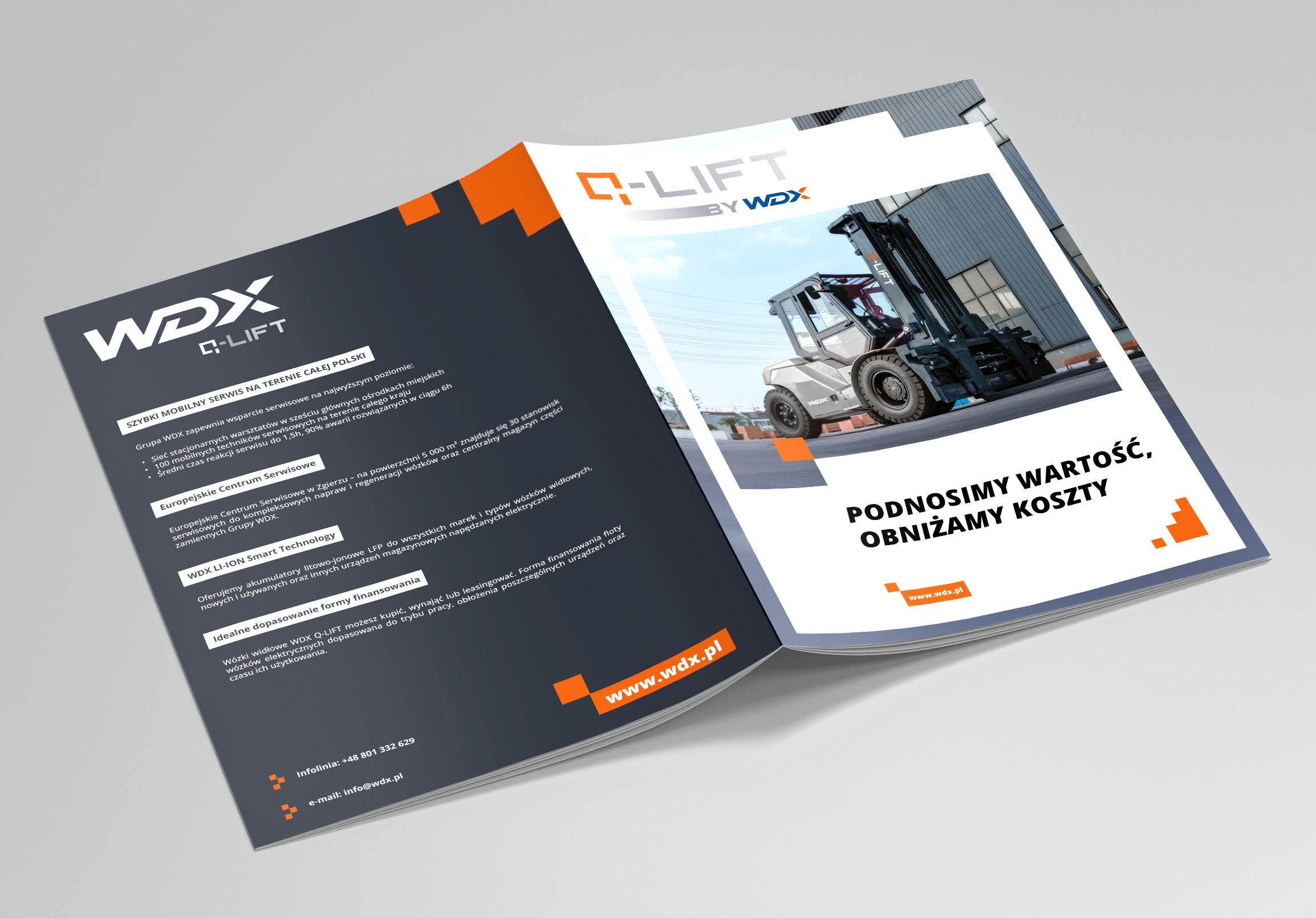 Tworzenie projektu folderu i druk dla dystrybutora wózków widłowych, Warszawa