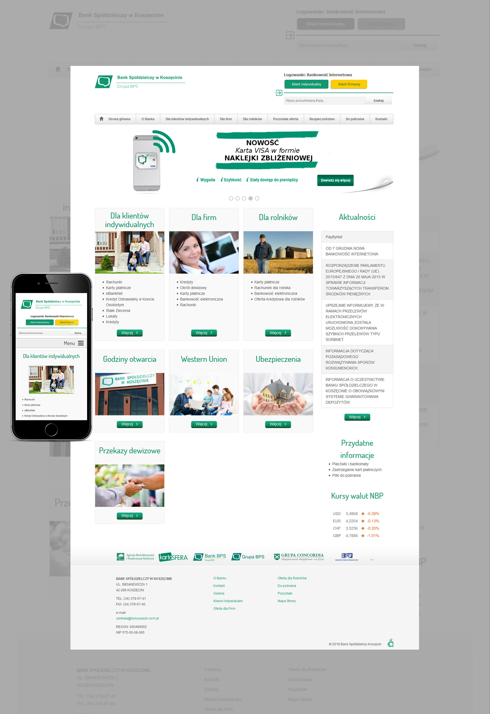 Projekt strony internetowej RWD dla Banku Spółdzielczego, Koszęcin