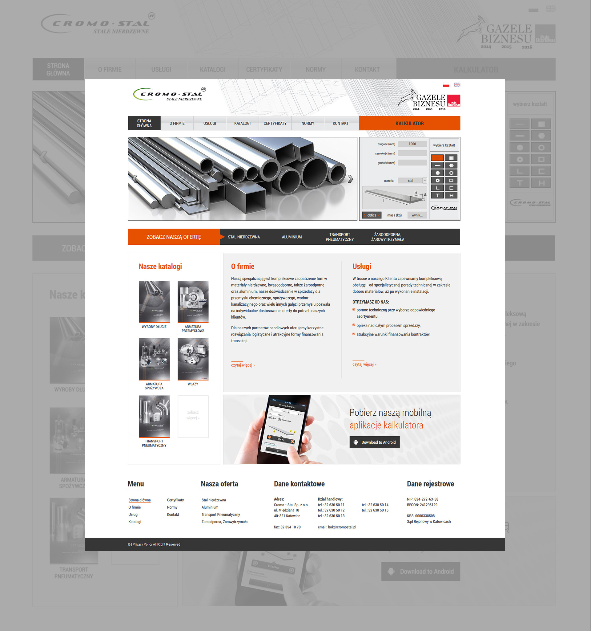 Zaprojektowanie strony www dla firmy z branży metalowej, Katowice